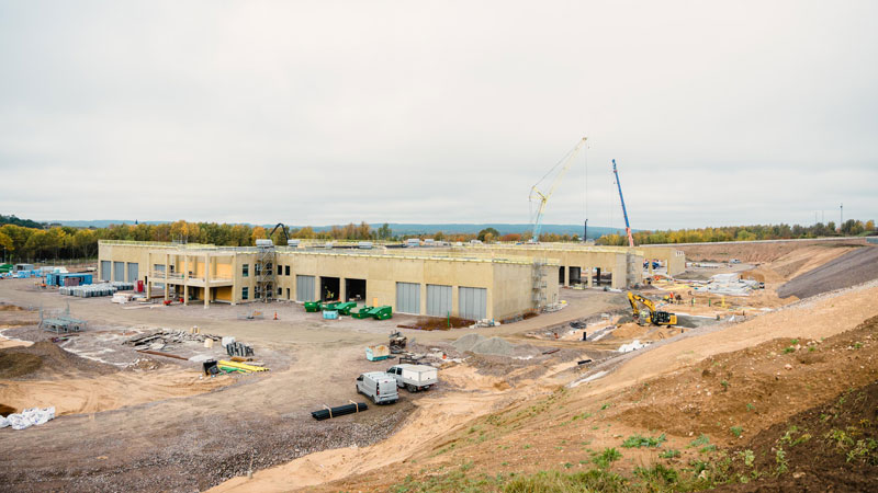 Bygget av den 24 000 kvadratmeter stora luftvärnshallen i Halmstad har nått halvtid!